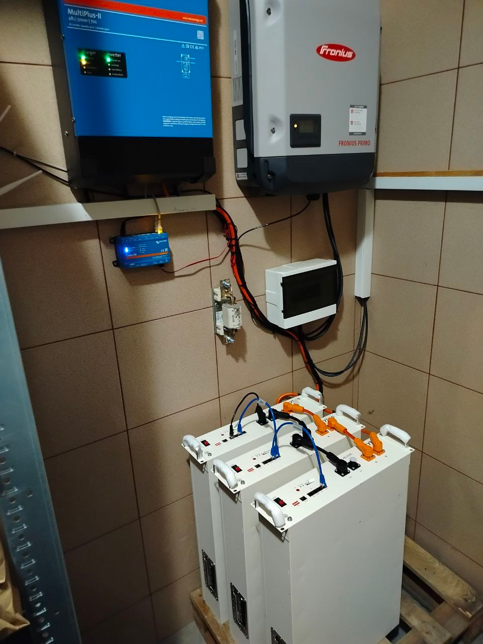 Система інтегрована з обладнанням Victron Energy та мережевим інвертором Fronius, що дозволяє ефективно поєднувати роботу від мережі, сонячної генерації та резервного живлення від акумуляторів.